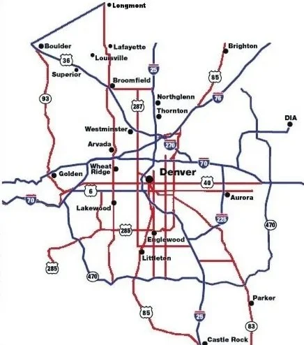 We offer our services in the Denver Metro area shown on the map. Areas outside of the map may have additional service charges.
